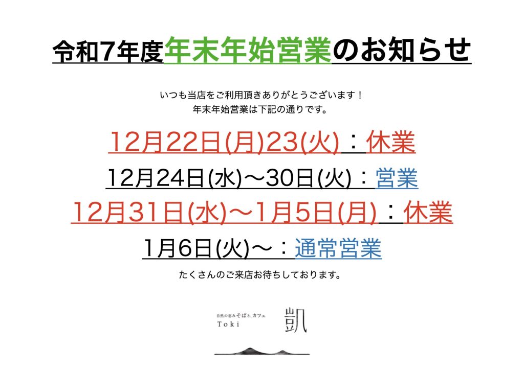 年末年始営業のお知らせ